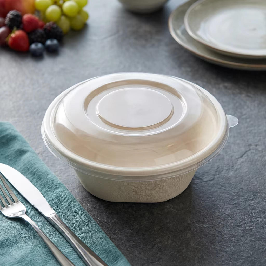 16gКрышки из ПЭТ-пластика изготовлены из высококачественного пищевого ПЭТ-материала с превосходной прозрачностью, обеспечивая хорошую видимость содержимого и улучшая общий внешний вид. Они безопасны, не имеют запаха и соответствуют международным стандартам контакта с пищевыми продуктами, что делает их подходящими как для внутреннего, так и для экспортного рынков. Разработанные для надежной и плотной фиксации, крышки из ПЭТ обеспечивают надежную защиту от протечек и помогают защитить продукты от пыли и загрязнений во время транспортировки и доставки. Легкие, но прочные, они устойчивы к растрескиванию и деформации и совместимы с различными пищевыми контейнерами, включая бумажные и багассовые миски, с возможностью выбора различных размеров и персонализации.