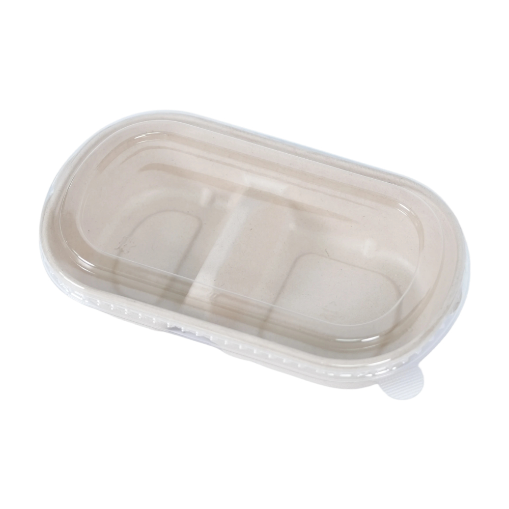 Smooth-surface PET Plastic Lid For Sugarcane Bagasse 850/1000ml Double Compartment Packing Box